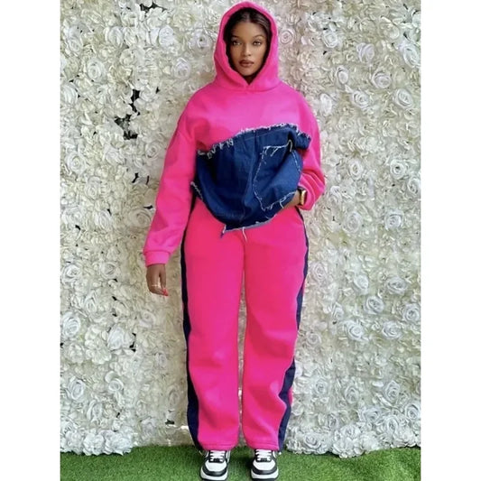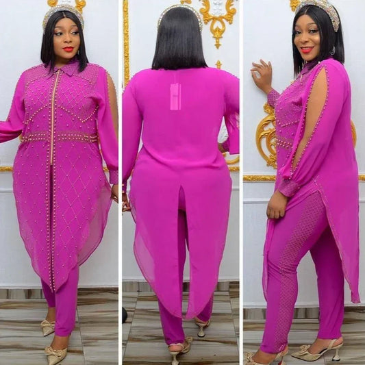 2025 Spring Autumn 2 Piece Women Set Dashiki African Clothes Fashion Long Sleeve Denim Top And Pants Suit Party Matching Sets