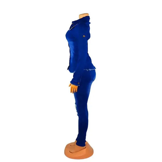 Casual Denim 2 Piece Set Jeans Suit Women Blue Long Sleeve Jeans Jacket Long Pants Slim Tracksuit Outfits 2024 Spring Autumn