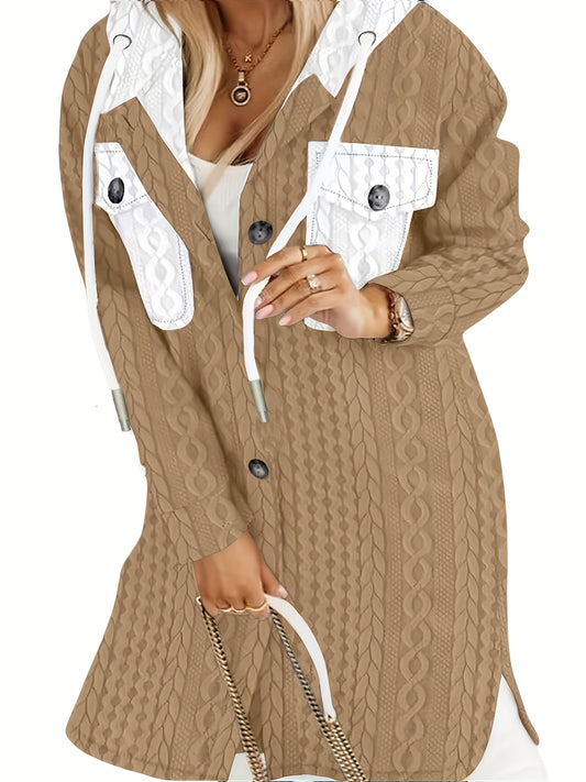 [Stylish Plus Size Jacket] Plus Size Women's Hooded Jacket - Black & White Color Block Winter Coat | Machine Washable, Warm Material, Stylish Outerwear for Cold Weather, Everyday & Formal Events, Fashionconscious Women, Elega