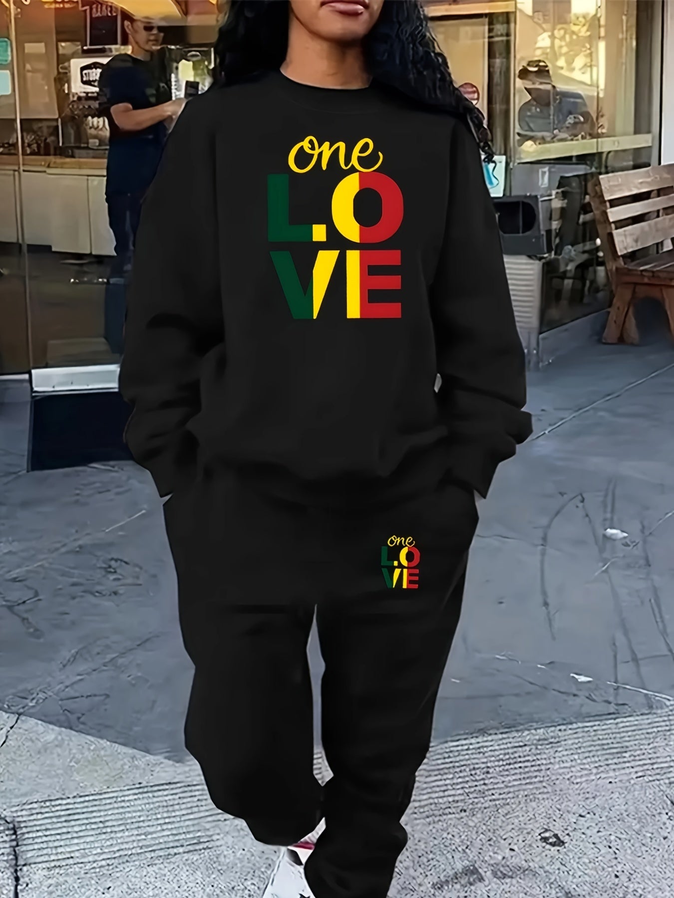 4444L73 Round Neck Sweatshirt Print Two-Piece Set