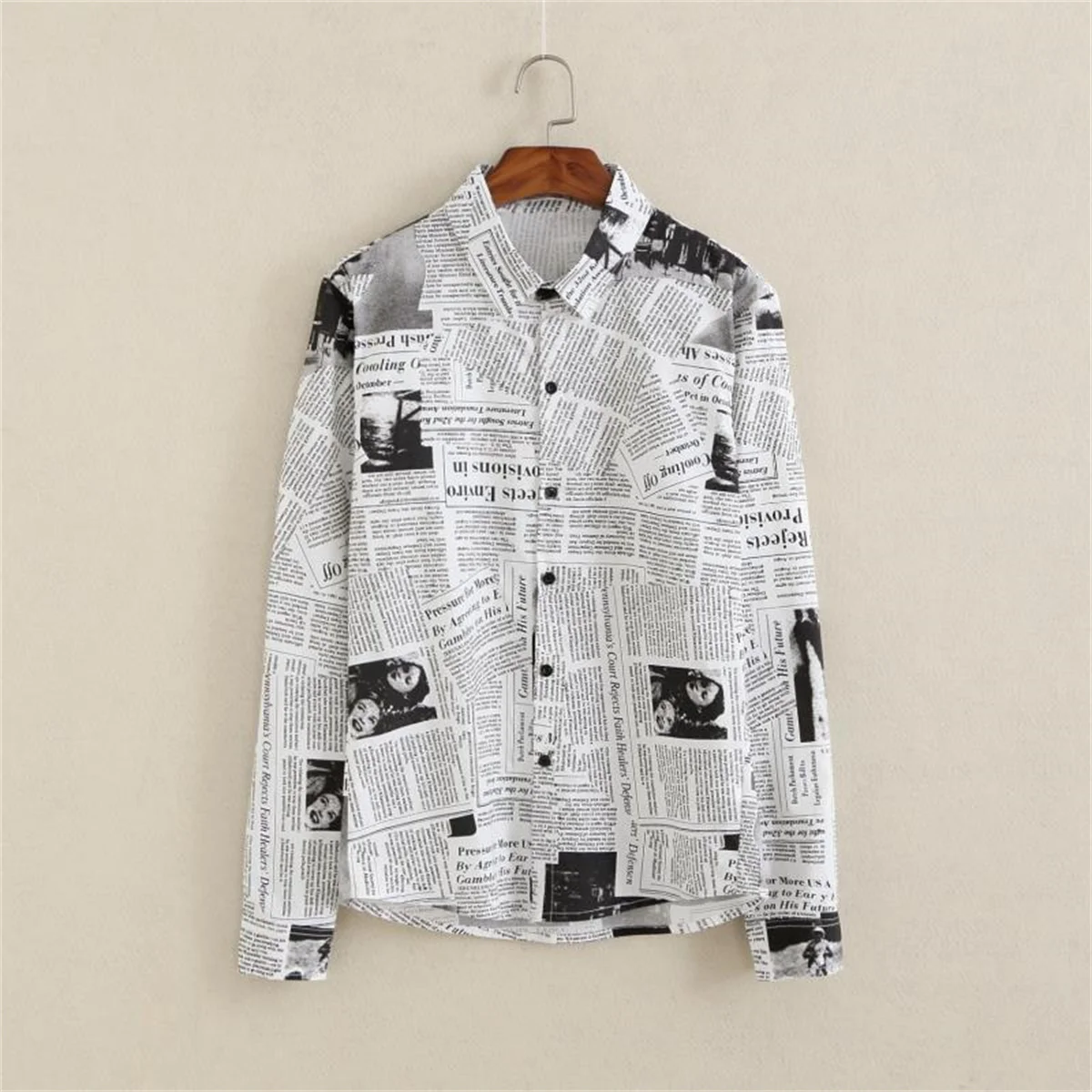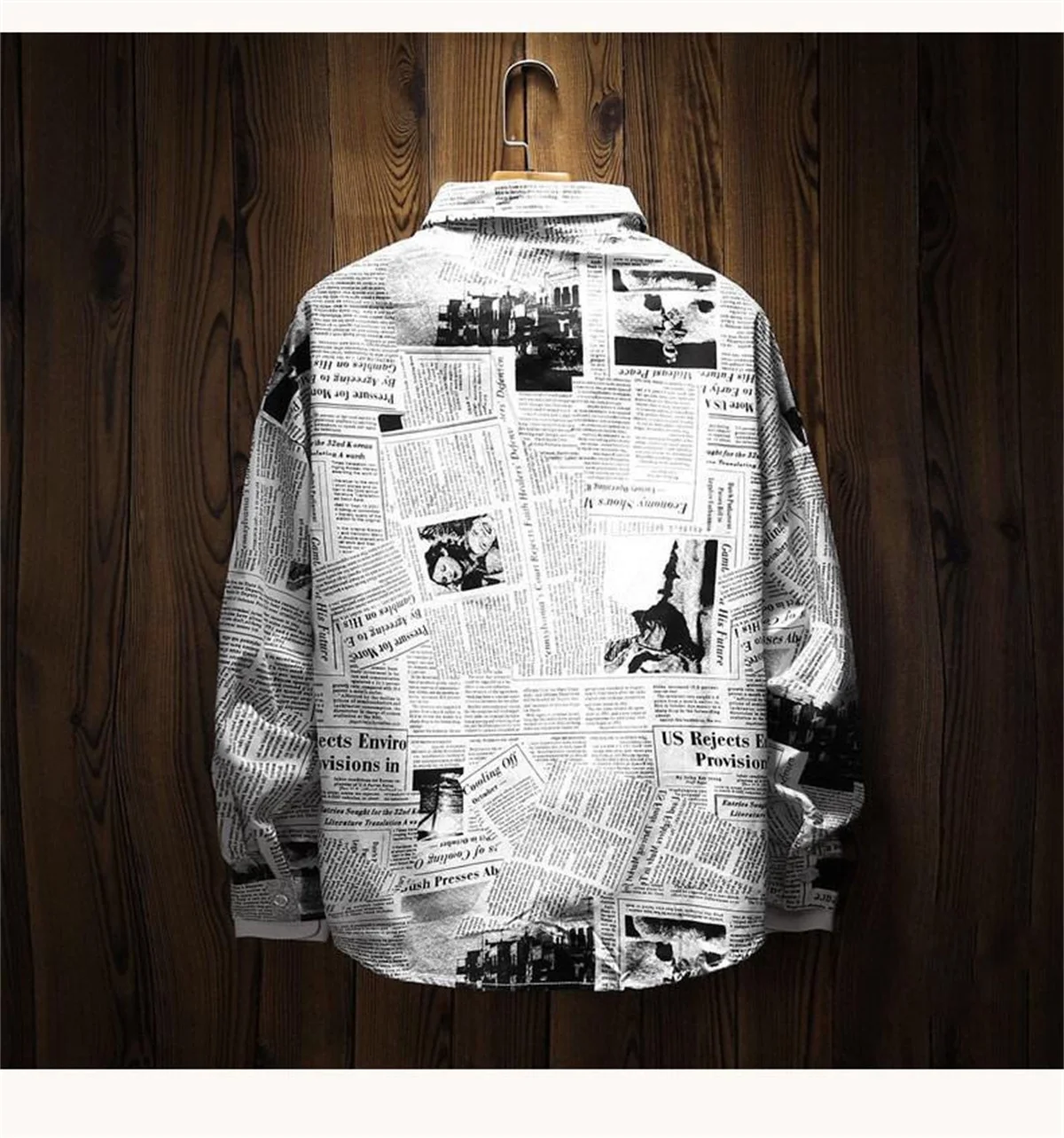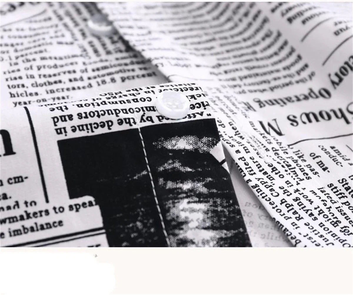 Cool Newspaper Shirts Men Fashion Hip Hop Loose Shirt Streetwear Long Sleeve Casual Summer Shirts Funny Ulzzang High Street Tops
