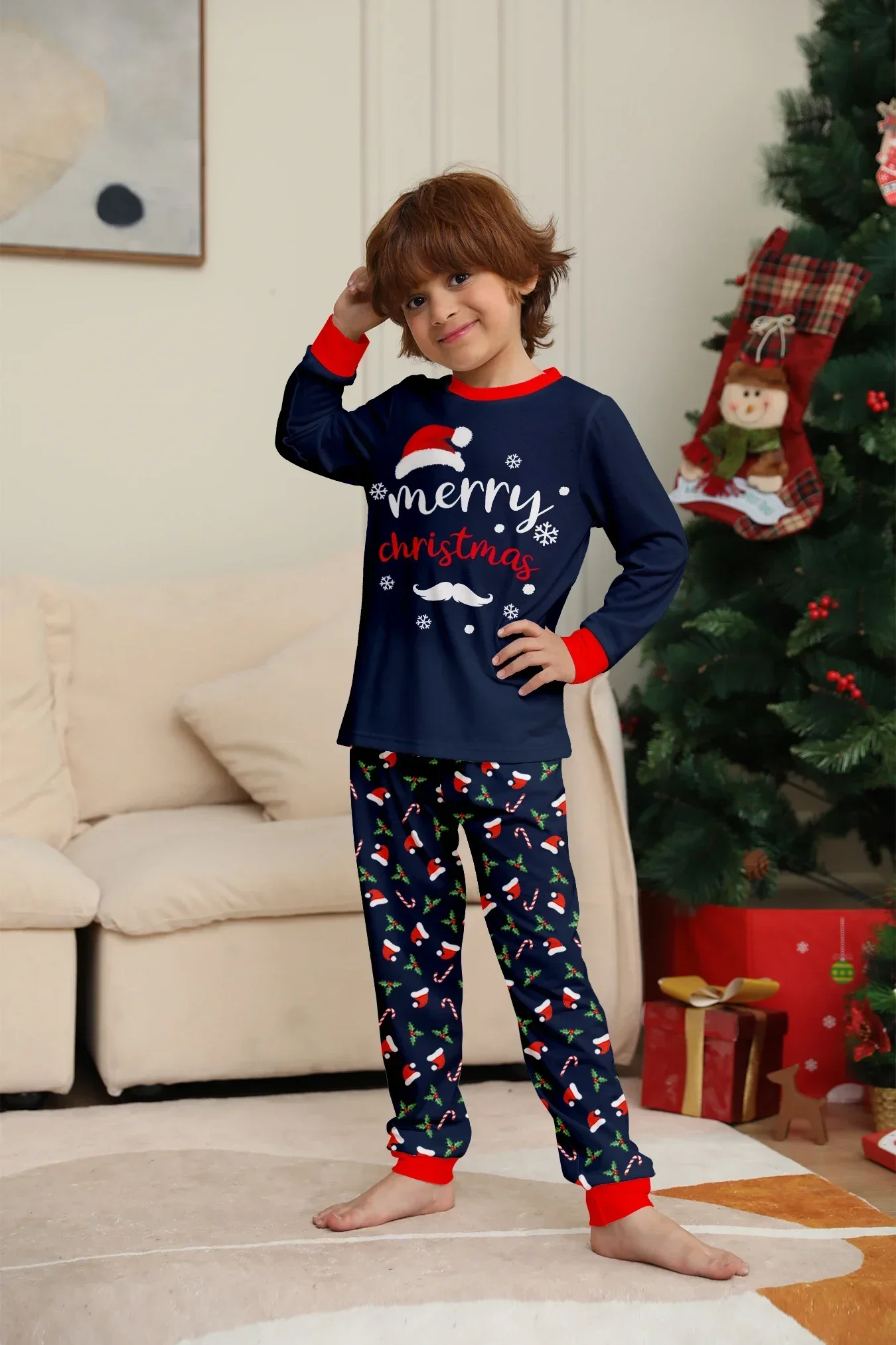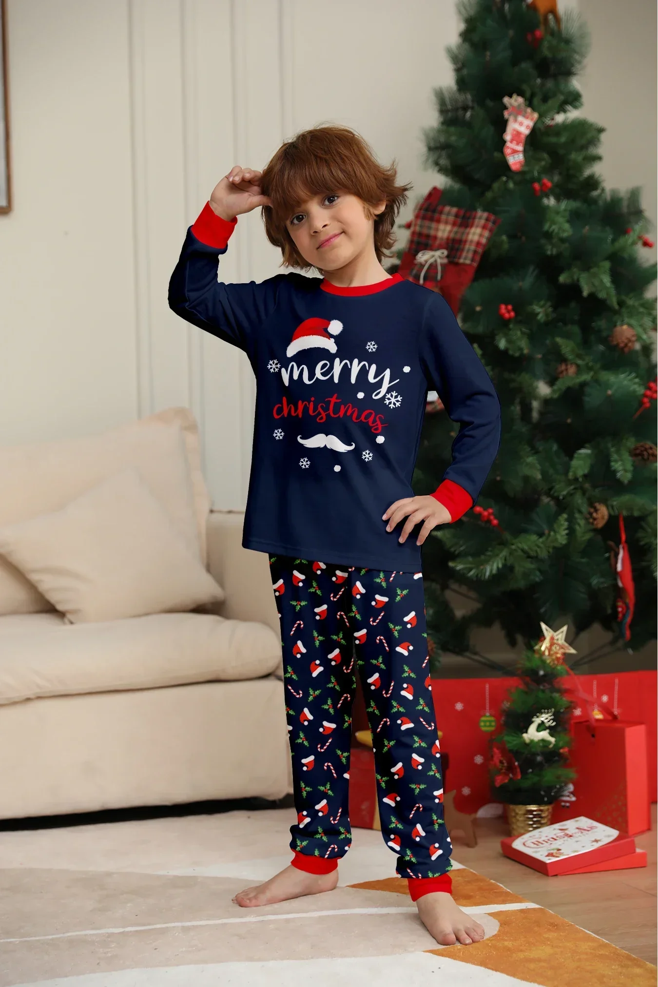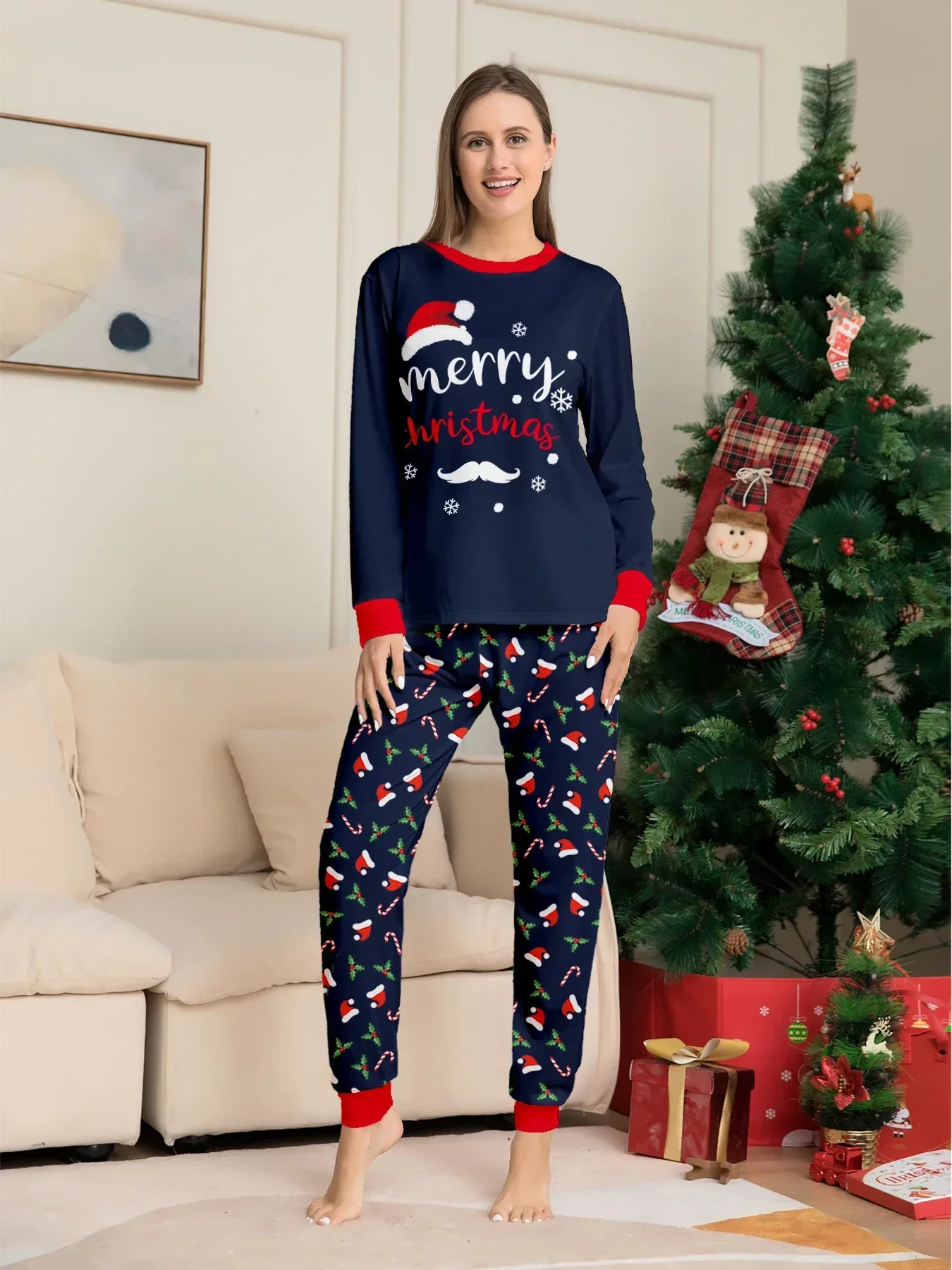 New Merry Christmas Print Mom Daughter Dad Son Matching Pajamas Set 2 Pieces Suit Soft Loose Loungewear Xmas Family Look Pyjamas